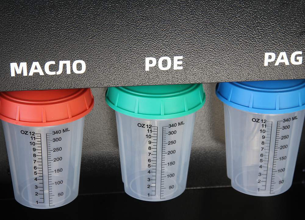• 4 электронные шкалы для измерения веса хладагента, масла PAG, масла POE, отработанного масла