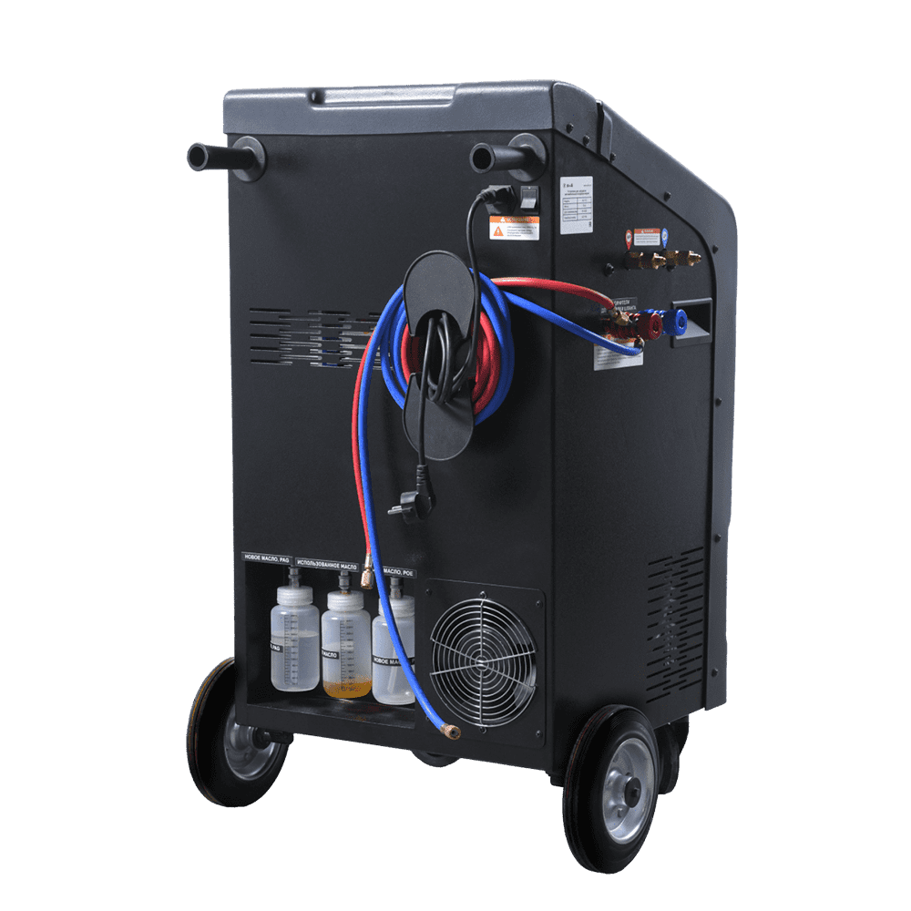 • Полностью автоматическая установка (слив хладагента, регенерация, слив масла, вакуумирование, тест на утечку, заправка масла, заправка хладагента)